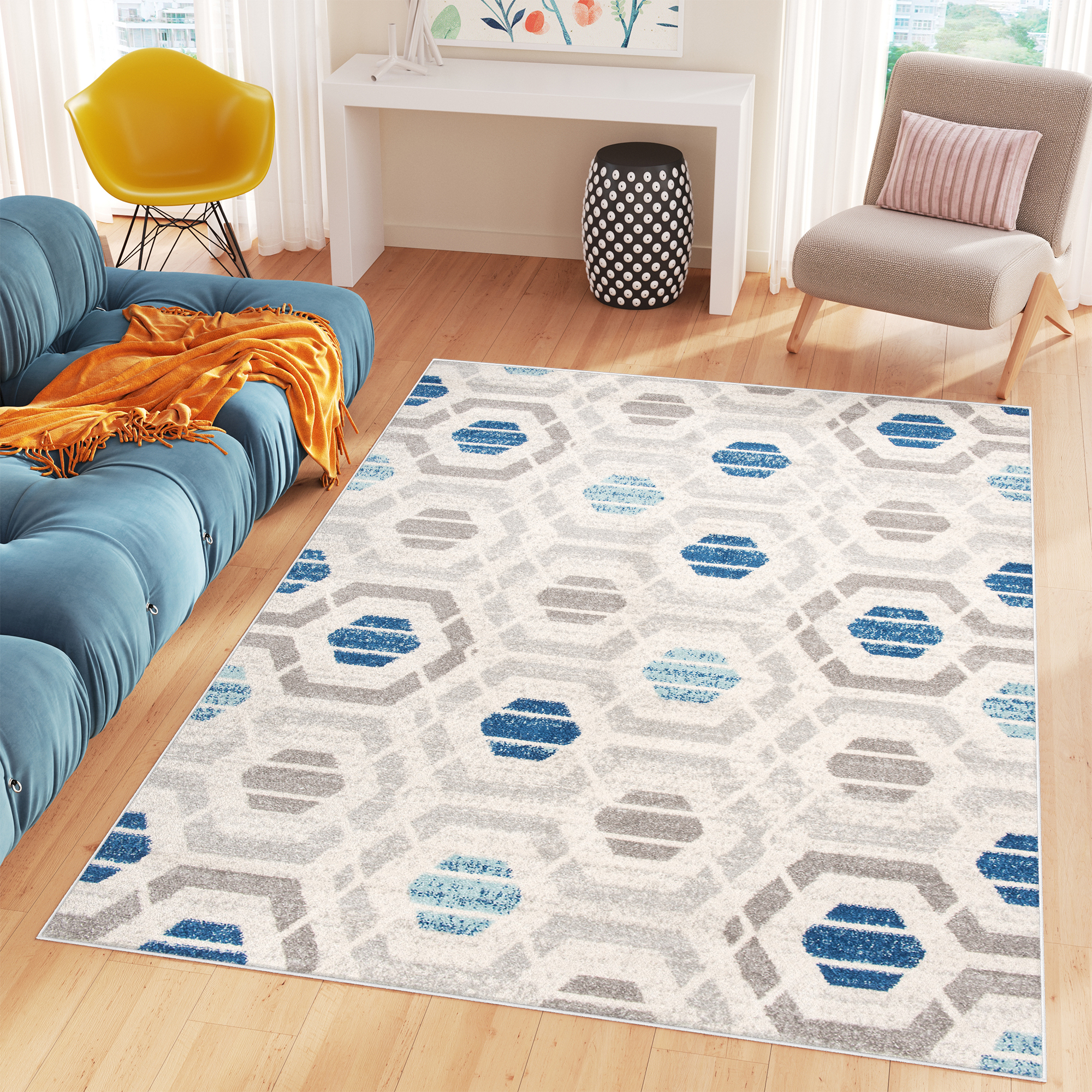La collection comprend des tapis au design moderne et aux couleurs saturées de bleu, orange, rose, jaune, crème et gris. Dans la collection de tapis COSMO il y aura également des suggestions intéressantes pour ceux qui aiment les motifs abstraits ou les motifs géométriques répétés. Ces tapis trouveront certainement un usage décoratif dans les chambres d’enfants et de jeunes, dans le salon, mais aussi dans la salle à manger, le hall ou le bureau.