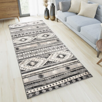 Des tapis de passage ETHNO fabuleusement colorés aux tons de noir, gris, crème seront un excellent réglage pour les intérieurs monochromes classiques. Ils adoucissent parfaitement l’austérité et le minimalisme des chambres modernes et complètent le naturel du style scandinave. Les motifs majestueux attirant l’attention de tous les invités. Ils auront fière allure en compagnie d’un canapé moderne lumineux et de meubles en acajou classiques. Ils répondent aux tendances actuelles en matière de design tout en étant faciles à nettoyer et à entretenir tous les jours.