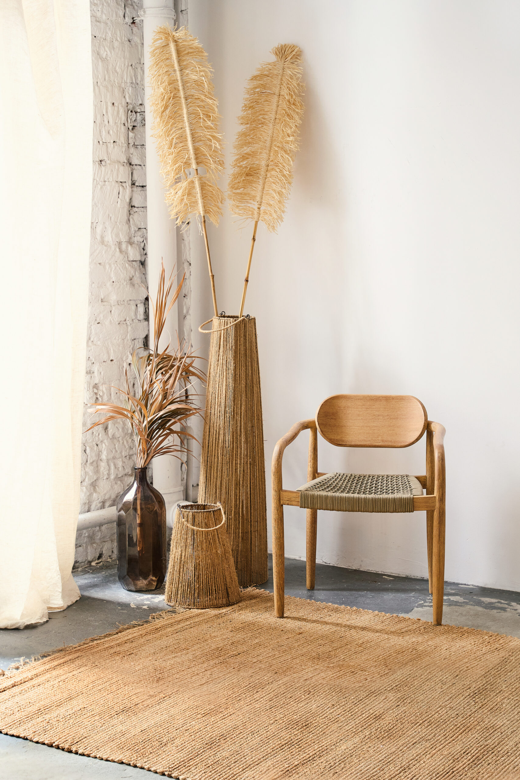 Fabriqué à 100 % en jute naturelle, ce tapis se distingue par sa texture unique et les nuances irrégulières de ses fibres, soulignant ainsi son authenticité et son caractère écologique.