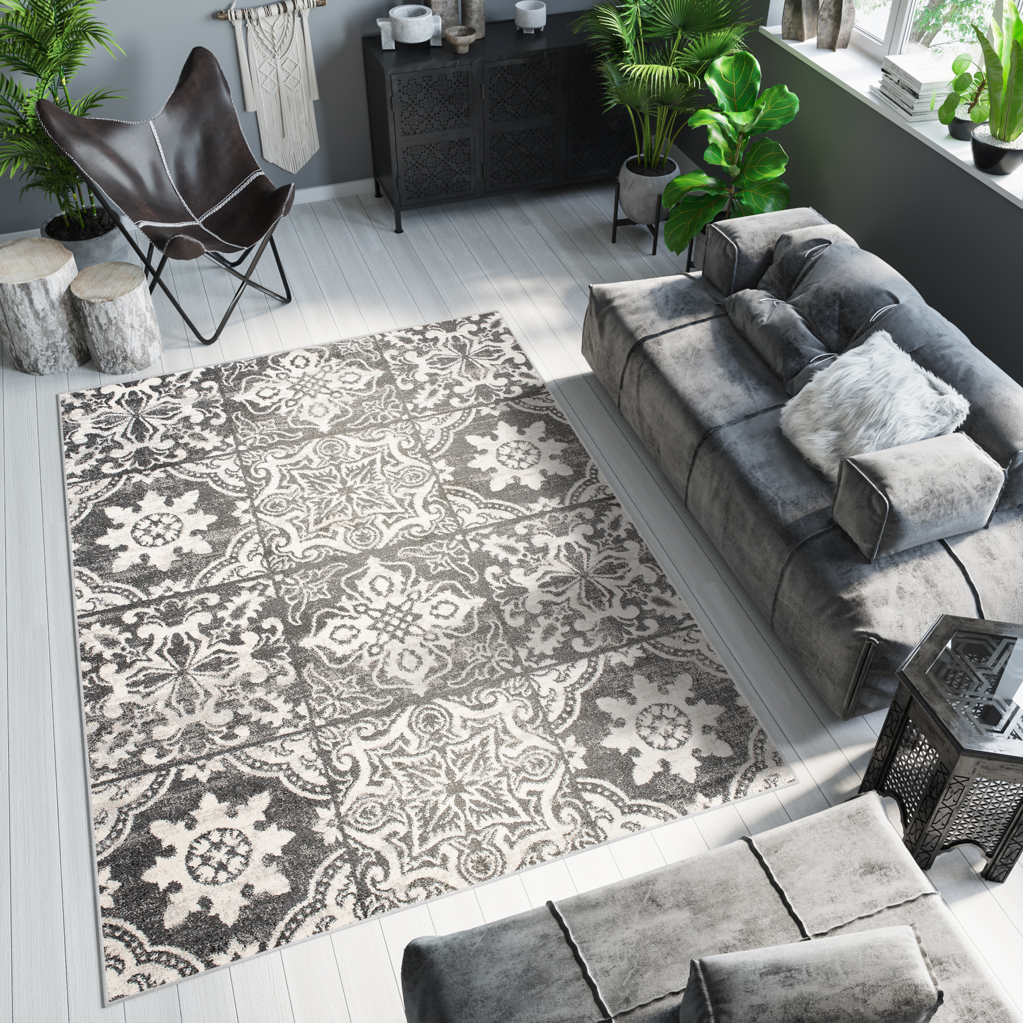 Des tapis ETHNO fabuleusement colorés aux tons de noir, gris, crème seront un excellent réglage pour les intérieurs monochromes classiques. Ils adoucissent parfaitement l’austérité et le minimalisme des chambres modernes et complètent le naturel du style scandinave. Les motifs majestueux attirant l’attention de tous les invités. Ils auront fière allure en compagnie d’un canapé moderne lumineux et de meubles en acajou classiques. Ils répondent aux tendances actuelles en matière de design tout en étant faciles à nettoyer et à entretenir tous les jours.